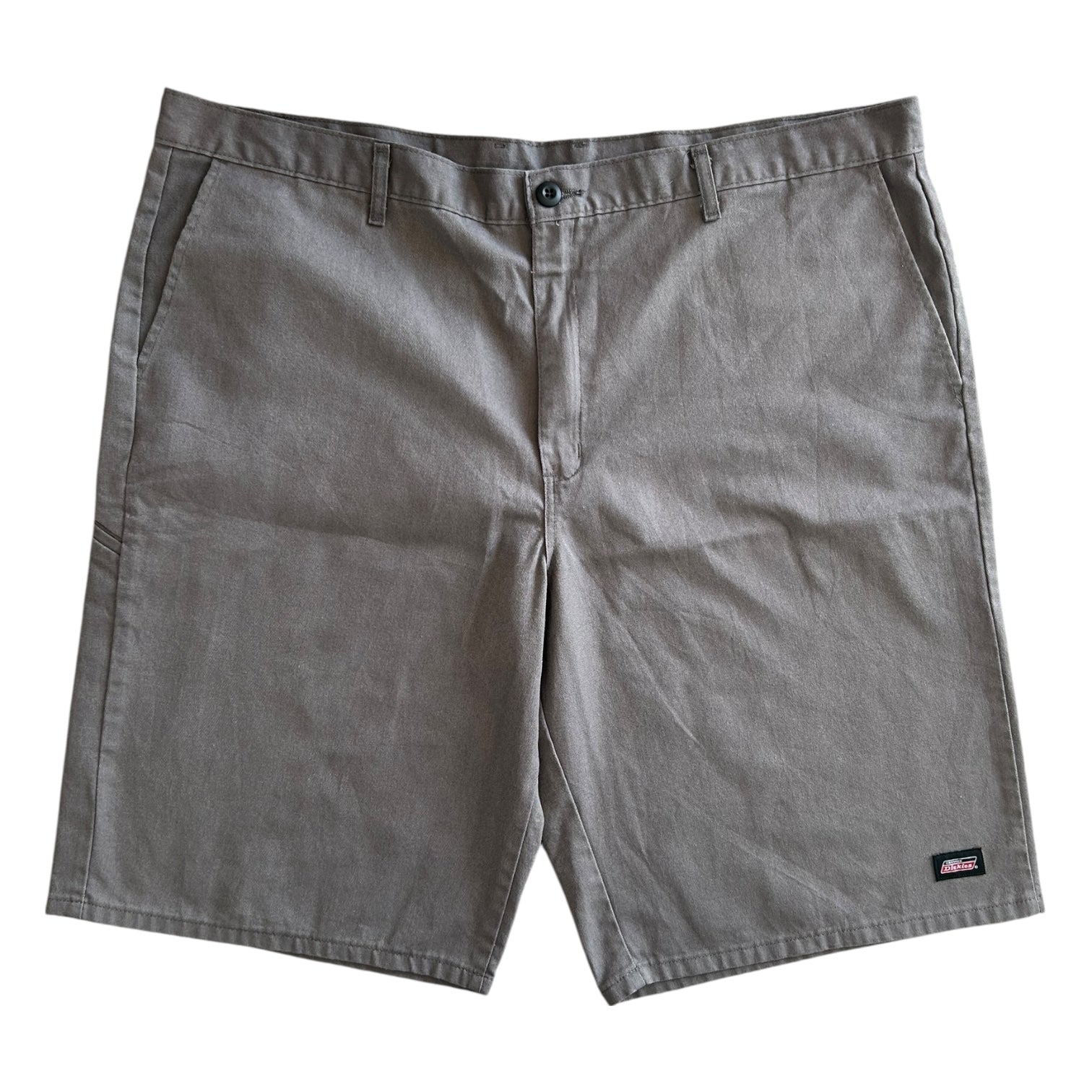 Product details: Grey shorts with pockets and belt loop, and a logo on the front