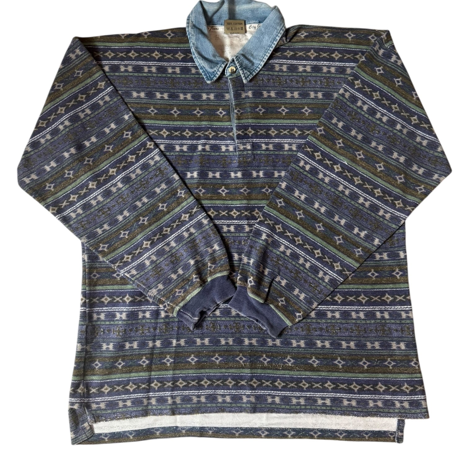 City Jeans Patterned Rugby Shirt in Blue size Extra Large