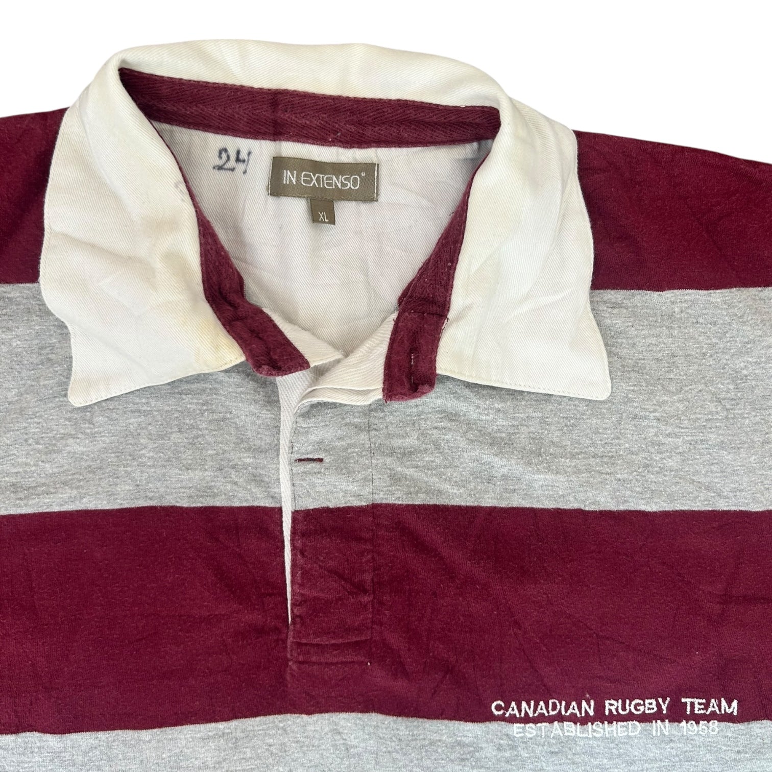 In Extenso Rugby Shirt in Grey and Burgundy size Extra Large