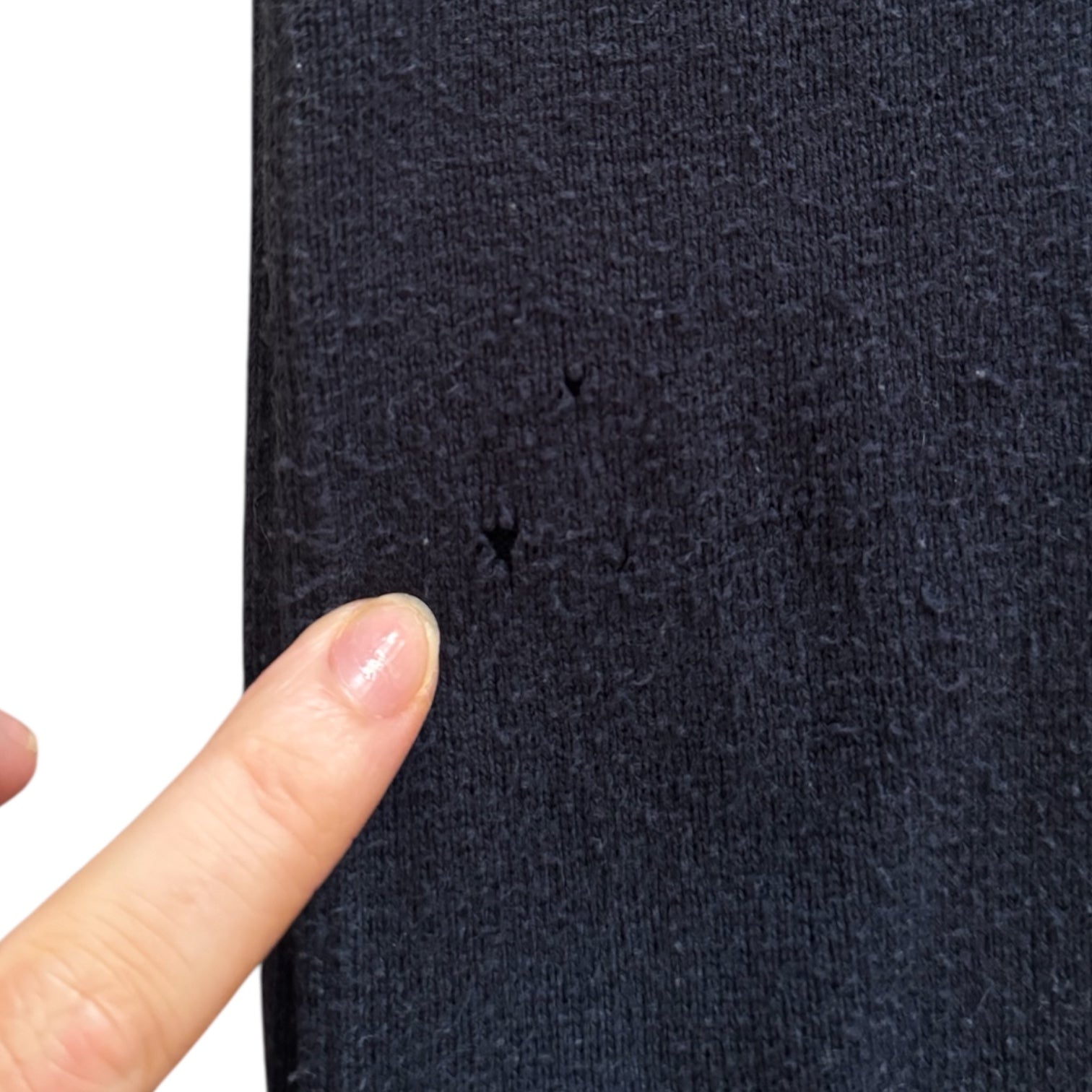 Small mark on one sleeve and a small hole on front (as shown in the last 2 pictures)