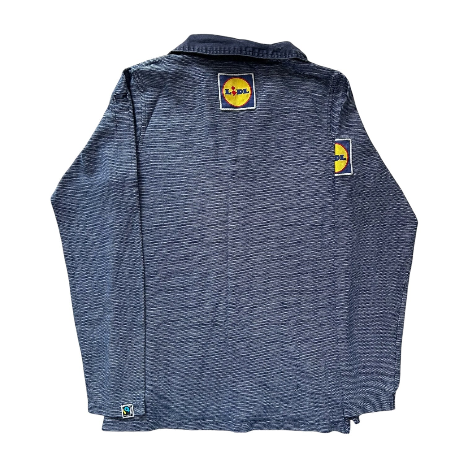 Product details: Blue long sleeve polo shirt with the Lidl text logo and two Lidl logo patches