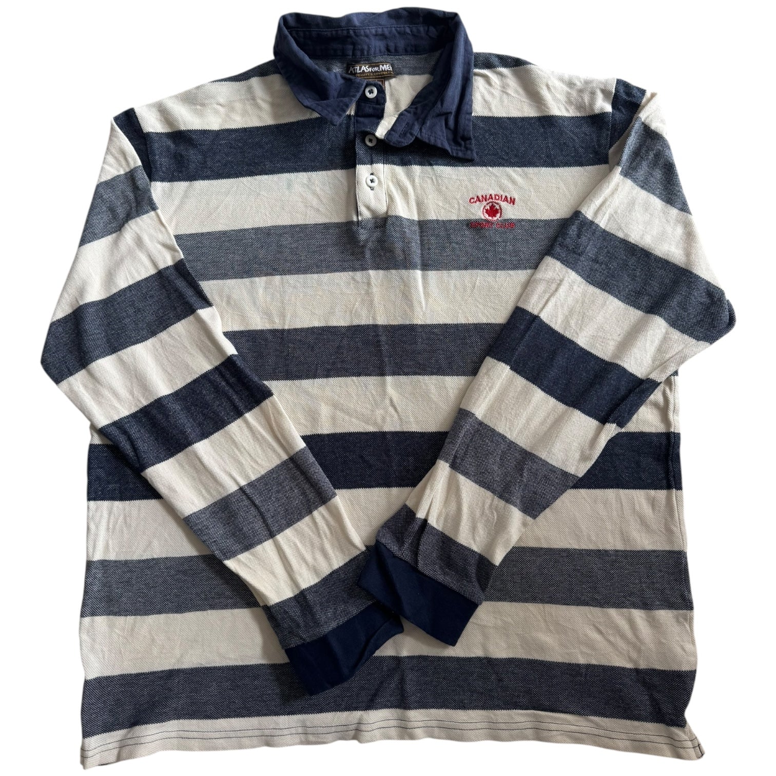 Atlas For Men Striped Rugby Shirt in Cream and Blue size Large
