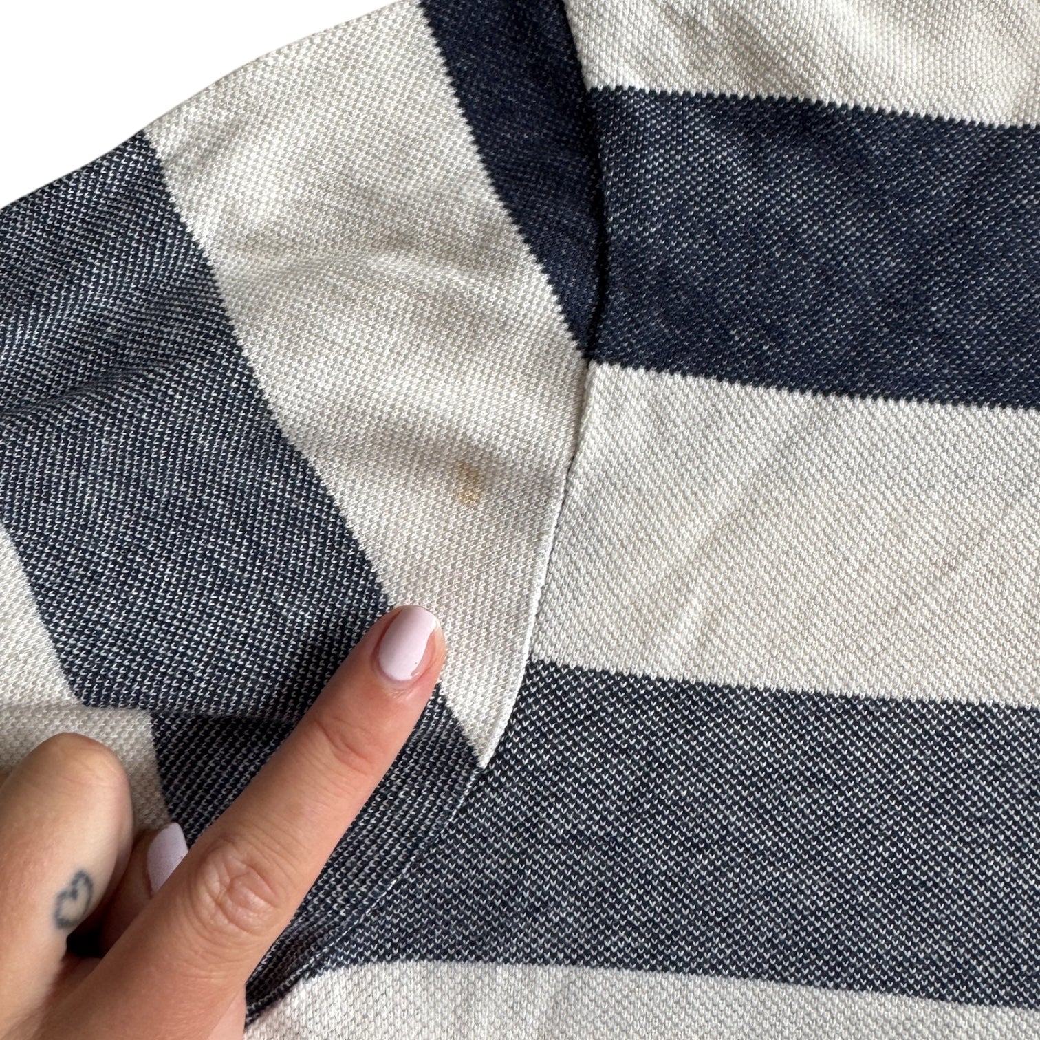 Small stain on one sleeve (as shown in the last picture)