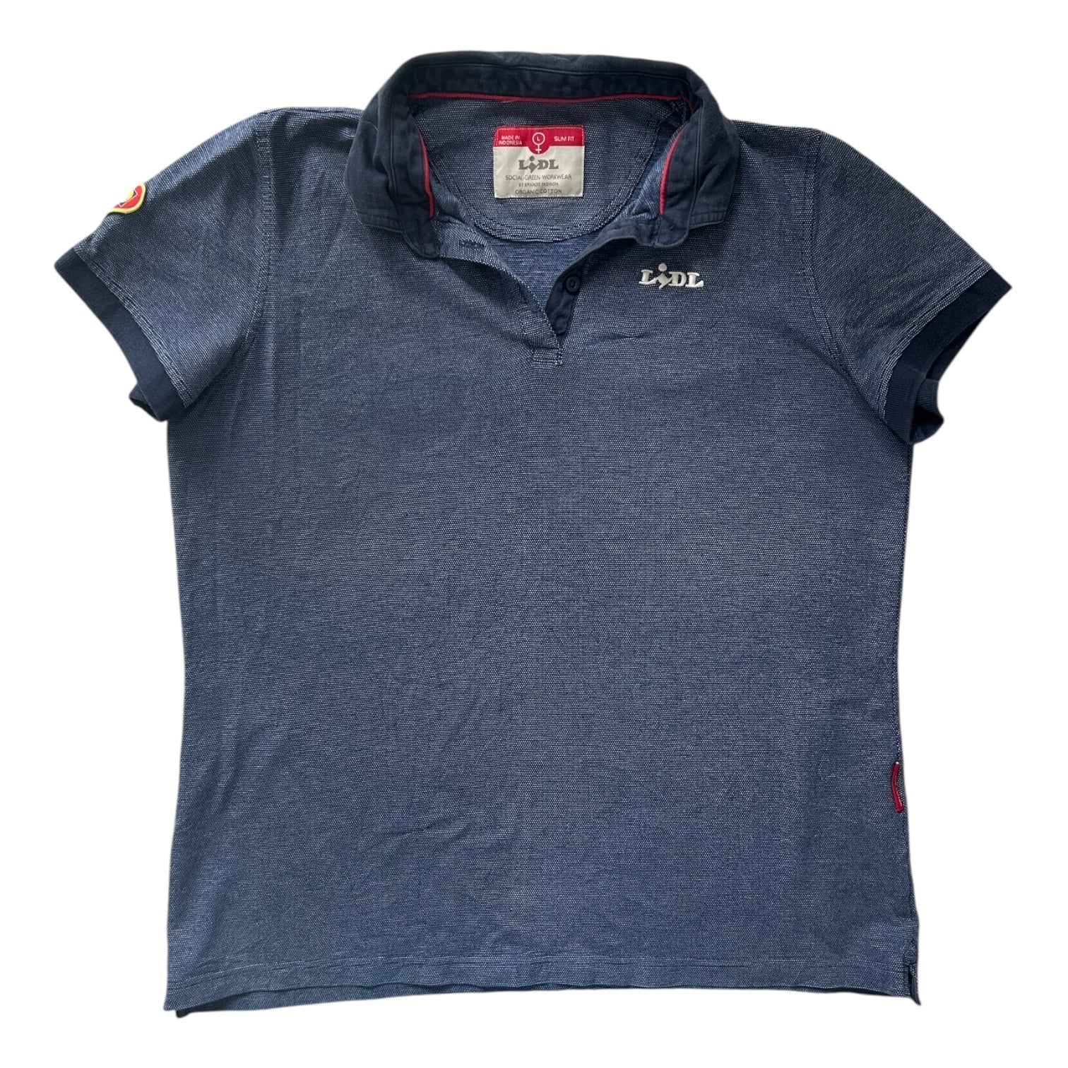 Product details: Blue polo shirt with Lidl text logo and Portugal Lidl logo patch