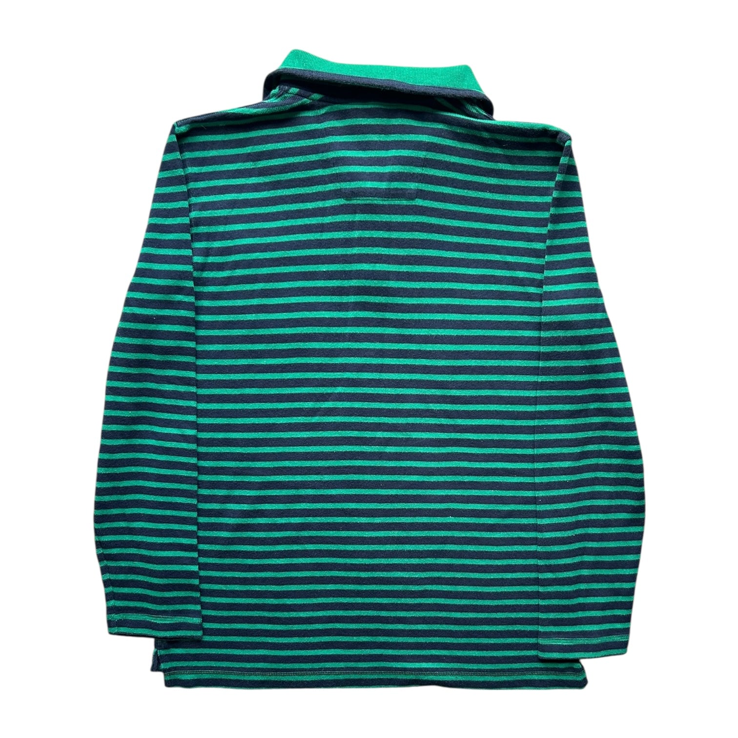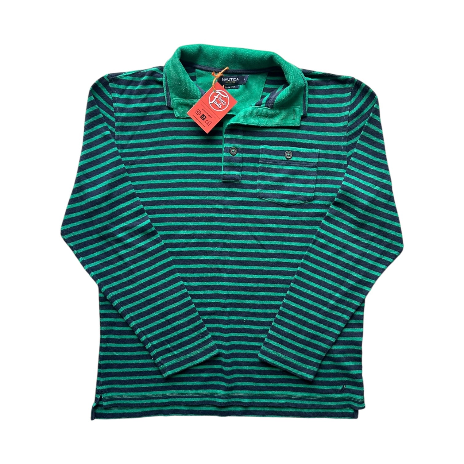 Large Nautica Green and Navy Striped Long Sleeved Polo Shirt