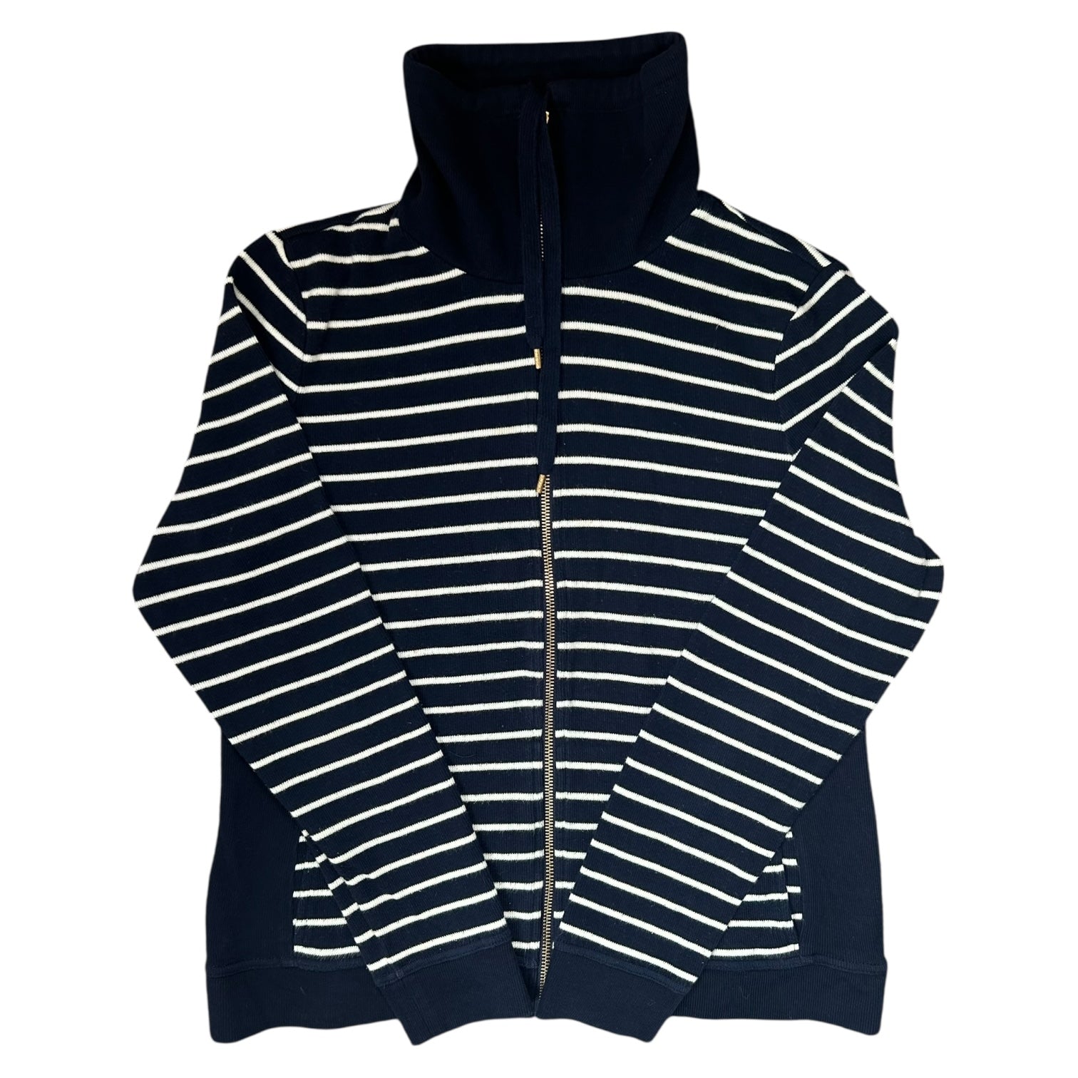 Product details: Navy and white striped full zip up sweater