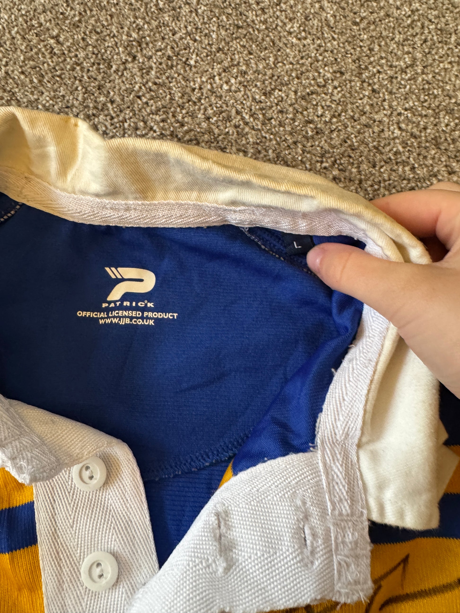 Patrick Leeds Rhinos Signed Rugby Shirt in Blue size Large. Barrie McDermott 1995-2005.