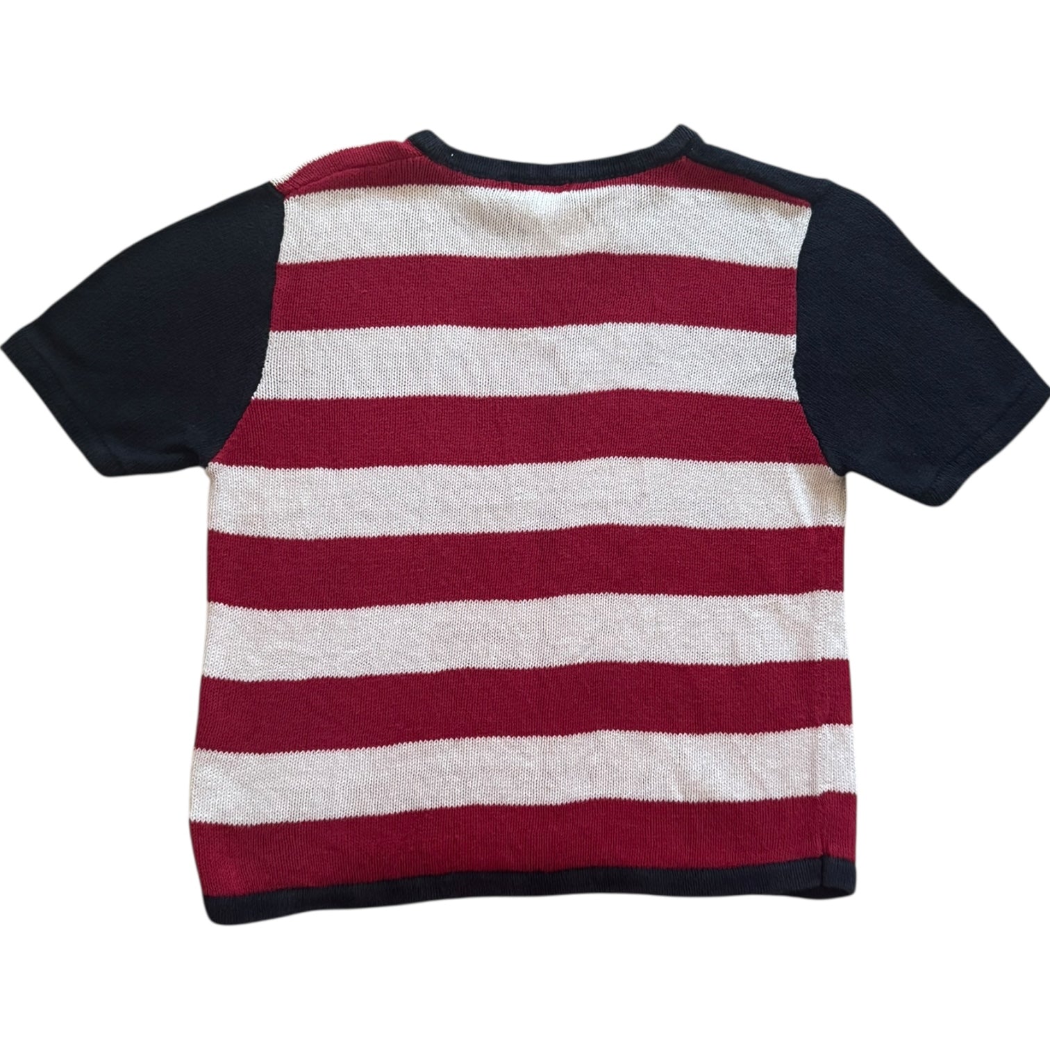 Small Christopher & Banks Flag Knitted Short Sleeved Jumper in Navy, White and Red size Small